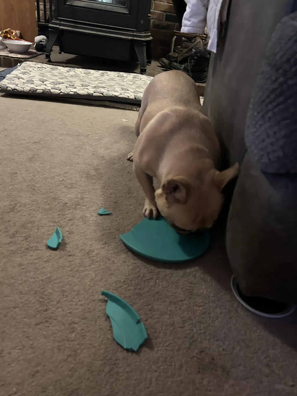My little Frenchie loves this Yomp Fetch Flyer to pieces-literally! He got so excited when I took it out and gave it to him because he loves the frisbee shaped toys but after half an hour of him playing with it, i noticed the pieces were coming off, bit by bit. I give the toy 4 stars because he’s had so much fun with it and it amuses him for hours, I’ll just need to supervise his play. And in Yomp’s defense, the package does say for soft or average chewers, of which Monty is not, so totally on me with that. It appears to be of good quality and I like the soft rubbery texture that’s gentle on my pup’s teeth. I’d recommend the toy for easy chewers or dogs that will actually play fetch with it.