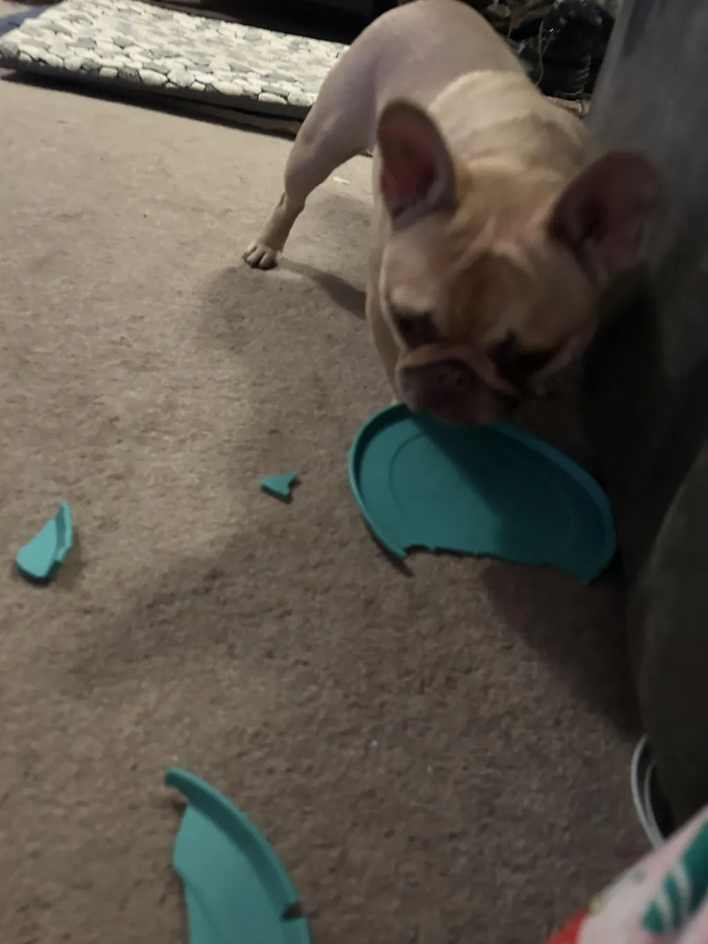 I received this package and was SO happy with it. The color is absolutely stunning. My dog now eats like a normal person instead of swallowing everything whole because of the slow feeder feature. It is SUPER easy to clean and the mat doesn’t move around at all on the ground!