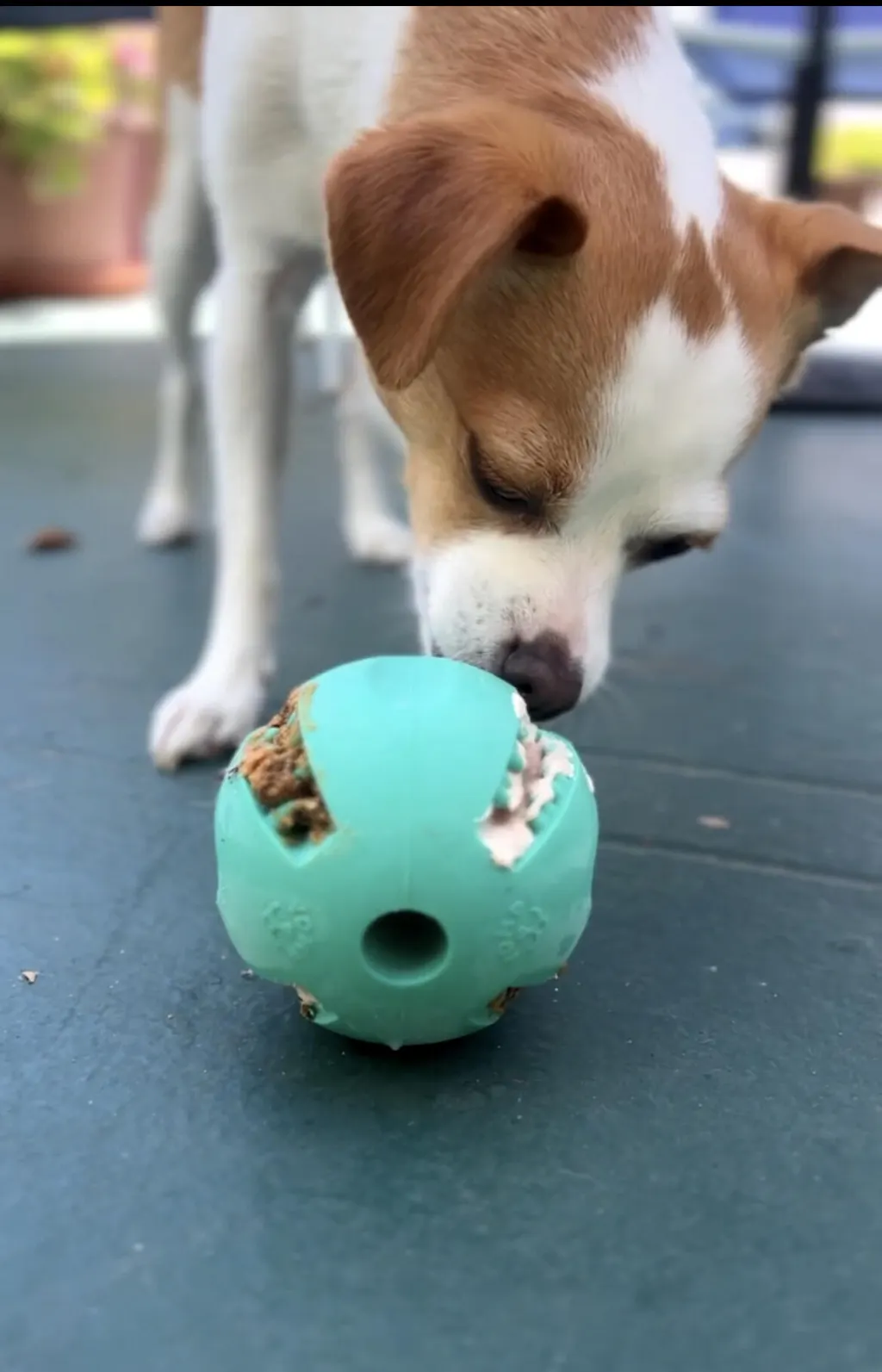 My dog can spend hours on a hot day licking the peanut butter out of the snacking ball grooves. We’re both big fans!